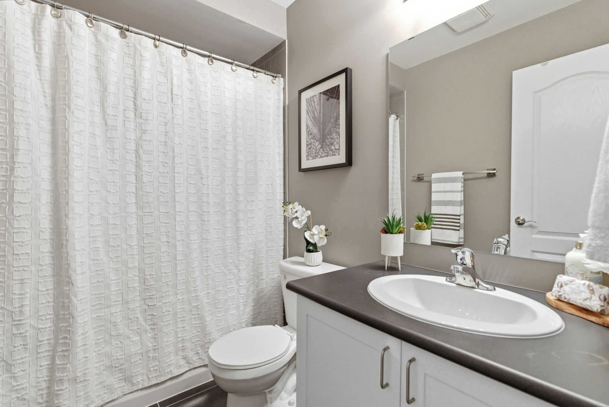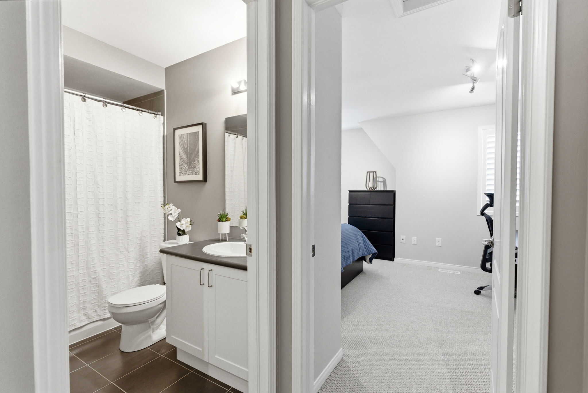 Upstairs, the massive primary bedroom includes a 4 pc ensuite bath with a glass shower and soaker tub, and wall-to-wall closets for lots of storage. The large secondary bedroom has access to its own 4pc bathroom. The finished lower level adds valuable living space - perfect for a recreation room, home office, or guest area.