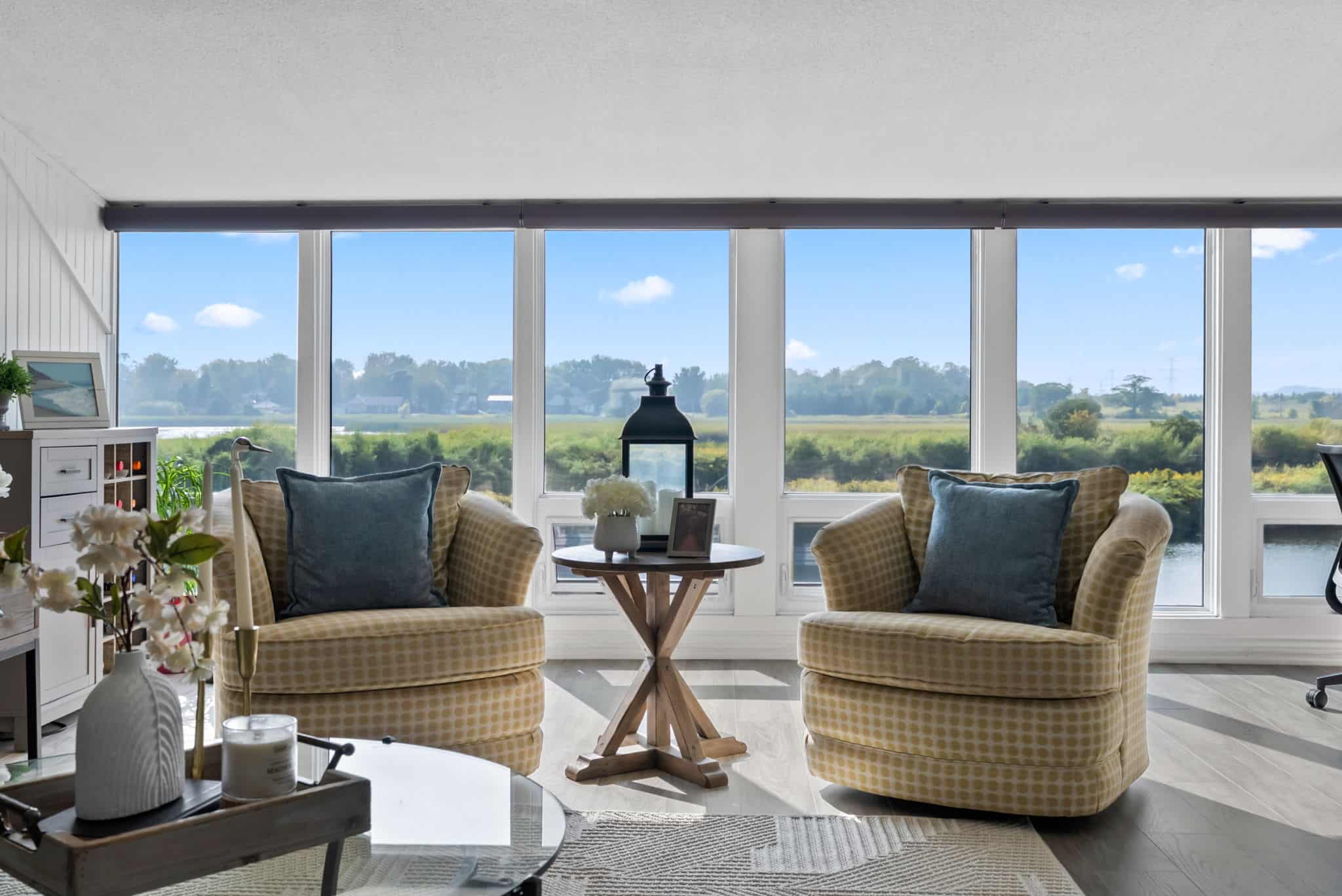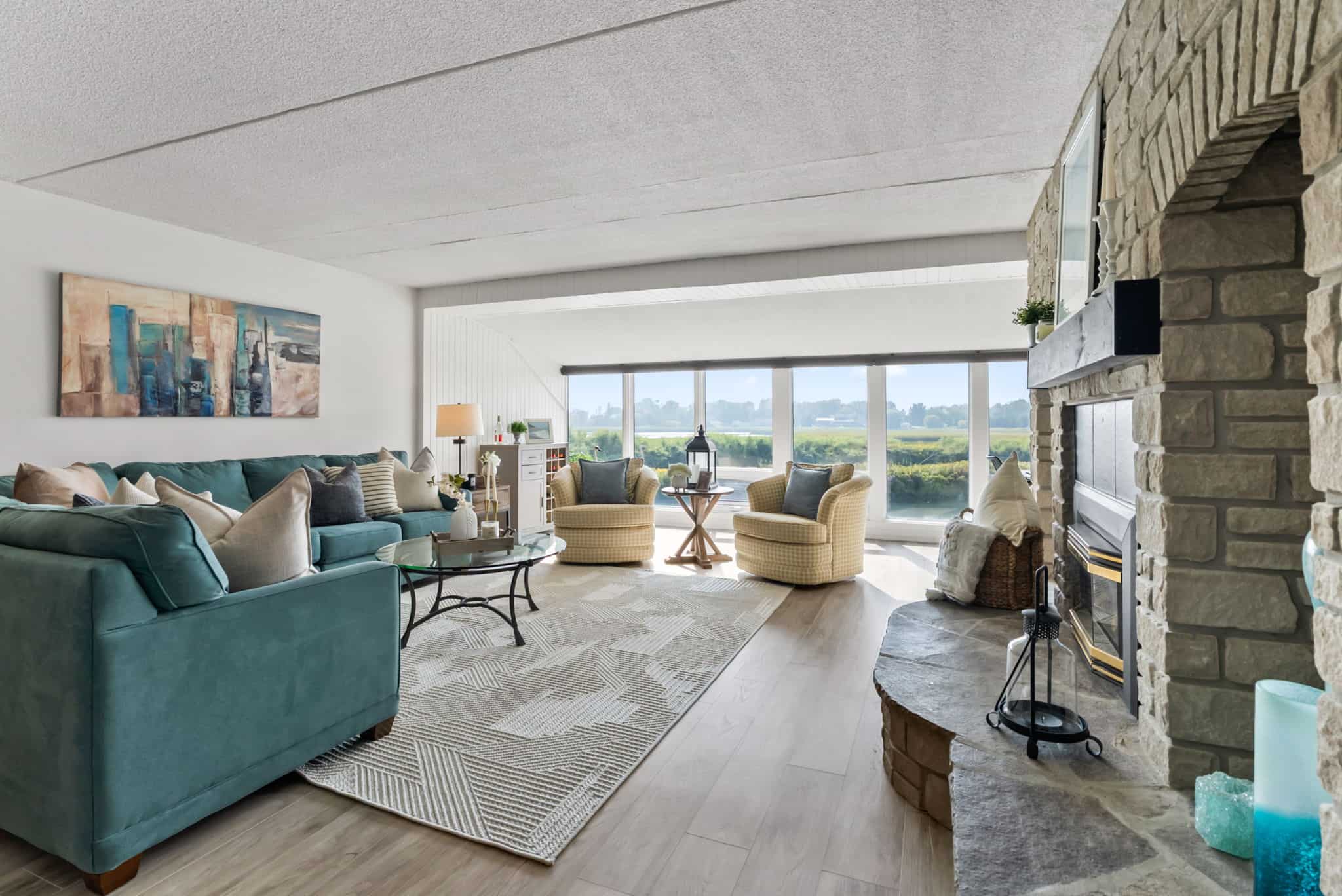 Experience one of Bowmanville’s best kept secrets. 120 Port Darlington Drive offers waterfront living at its finest in this beautifully maintained three bedroom condo, overlooking Bowmanville Harbour with views of Lake Ontario. If you are looking for a peaceful and quiet setting with quick access to Hwy 401 and all amenities - this is it! Enjoy kayaking and fishing right off your door step, with plenty of walking trails including the waterfront trail, Bowmanville Westside Conservation Area and Port Darlington East Beach Park. Inside, this unique layout features floor to ceiling windows in both the open concept main living space and the primary suite providing spectacular unobstructed views of the lake, and filling the home with an abundance of natural light. The spacious updated kitchen includes granite countertops, stainless steel appliances, and plenty of cabinet space. The living area features a built-in gas fireplace with a stone accent wall and mantle - a true centrepiece. Upstairs, the spacious primary bedroom offers a walkout to a large balcony overlooking the lake, semi ensuite bathroom and a walk in closet. The ground level provides an additional bedroom space with a 3 piece bathroom, which can also be used as an office or den area. Two car parking is included in the carport with direct access to the home. Enjoy low maintenance living with an abundance of activities at your doorstep. The Baird Real Estate Team. Royal Lepage Frank Real Estate.