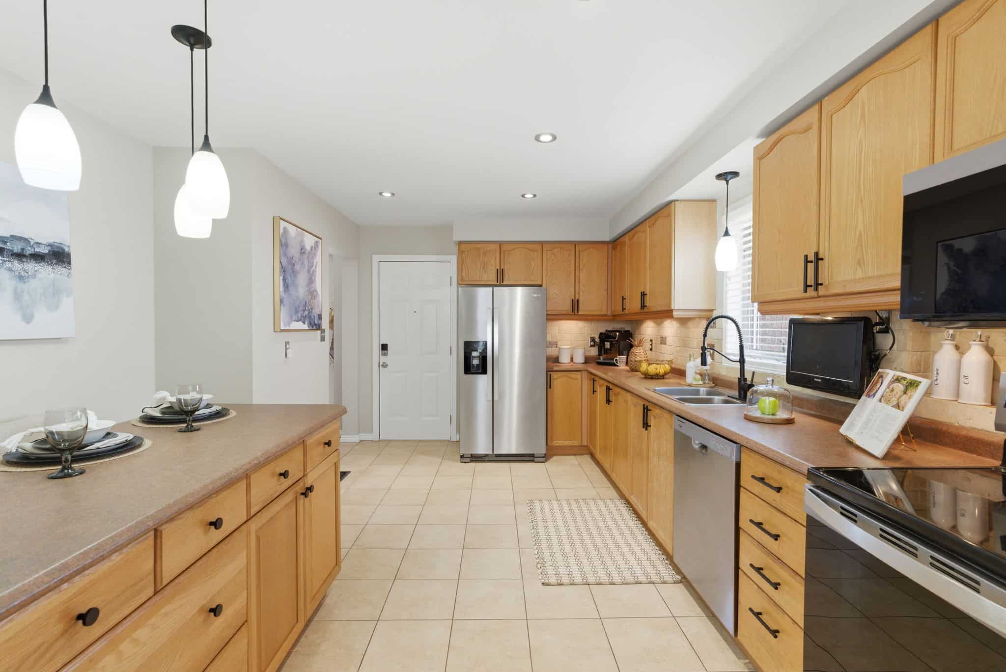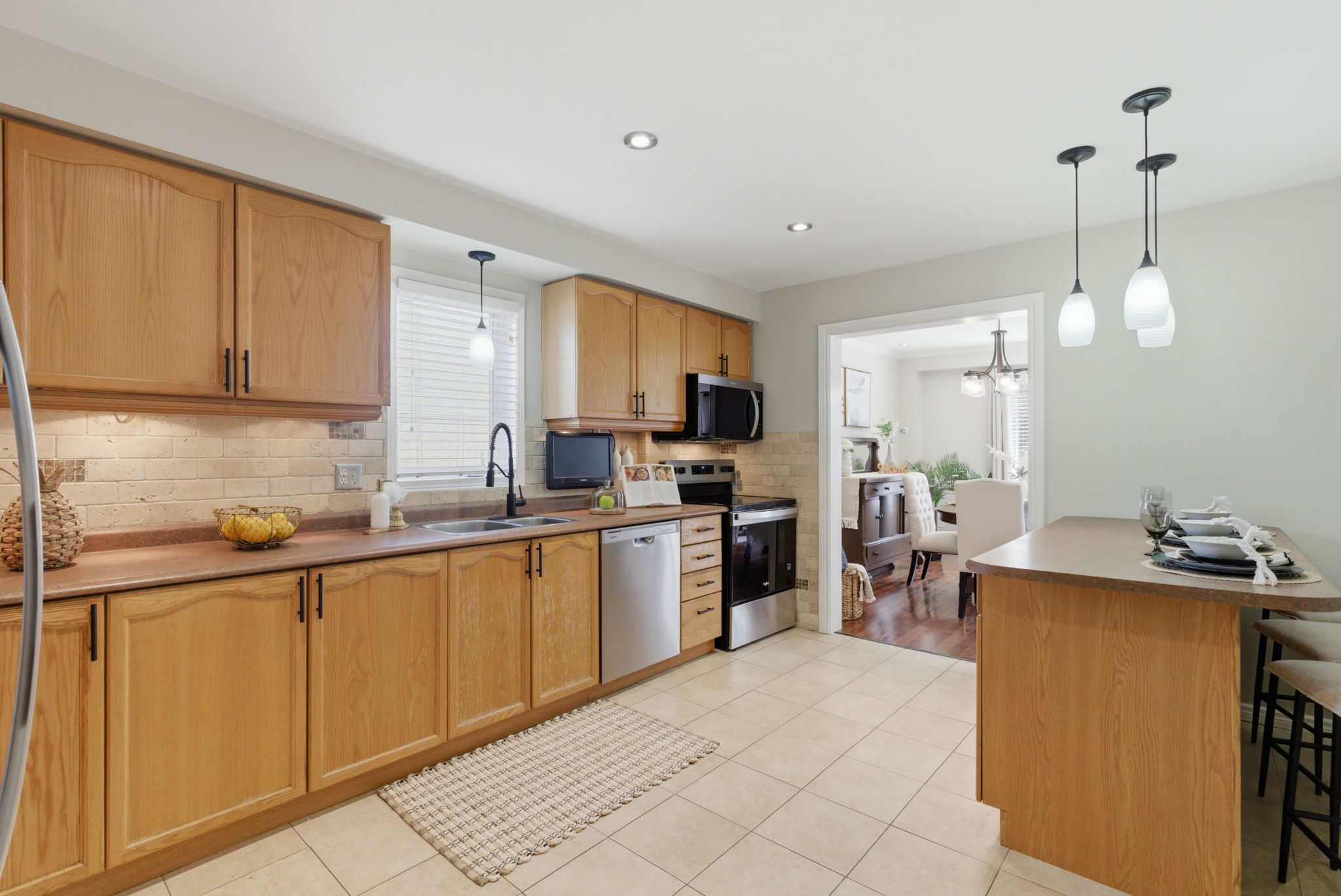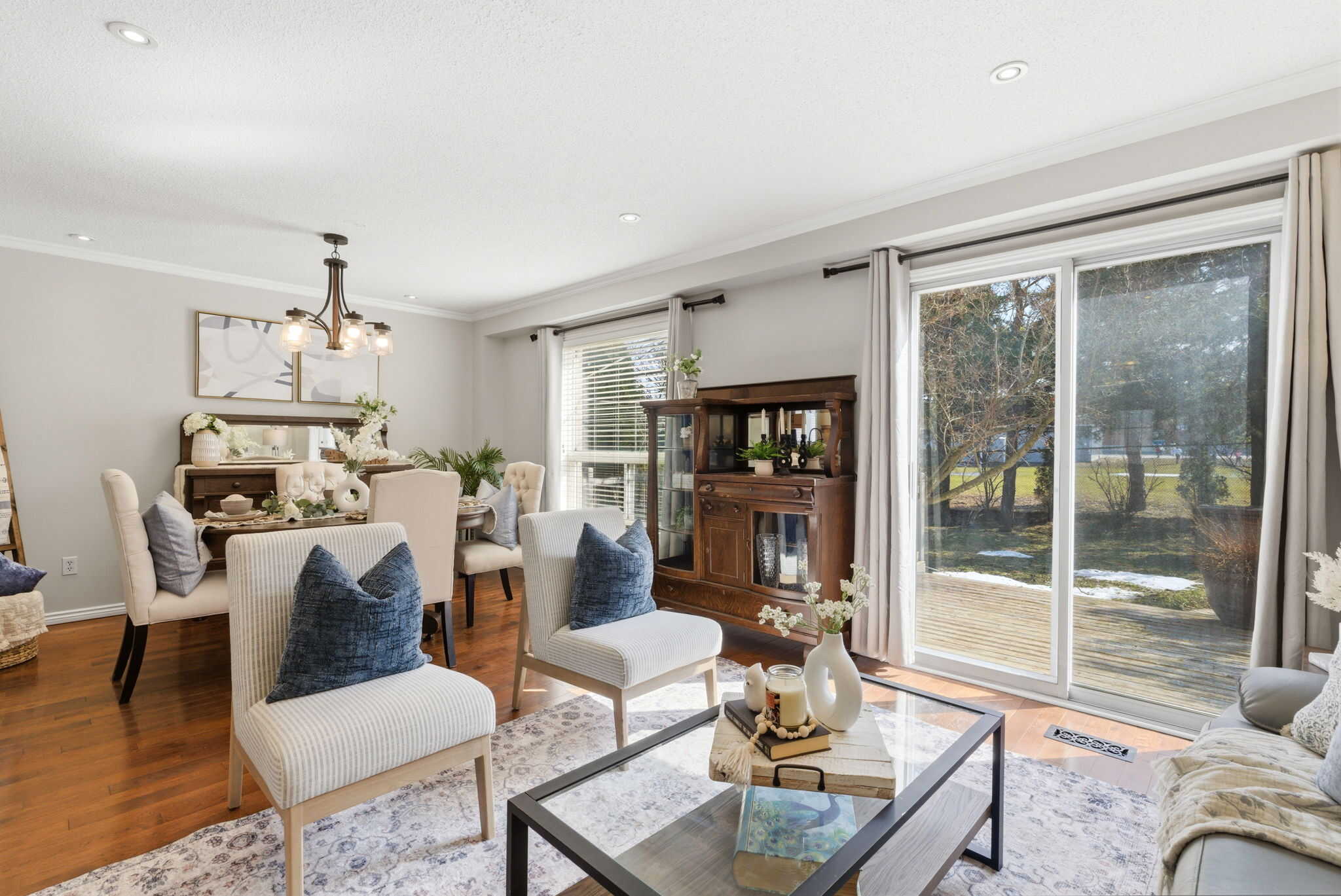 Welcome to 15 Maxwell Court in the heart of Bowmanville - a beautifully maintained family home nestled on a quiet family-friendly court. With 40 feet of frontage and no neighbours behind, this property offers both privacy and a peaceful setting. Step inside to a bright and inviting main level with an open concept living and dining room featuring hardwood flooring and modern pot lights. The spacious eat in-kitchen features new stainless steel appliances, under cabinet lighting, and a movable island with a breakfast bar. Walkout to the private backyard surrounded by mature trees and a large deck - perfect for entertaining. Upstairs, you'll find three generous sized bedrooms, including an inviting primary retreat with its own private ensuite. The finished basement provides additional living space - ideal for a recreation room, home office, gym, or play area. Additional highlights include a double car garage with convenient interior access, interlocking brick driveway, and a desirable location close to parks, schools, shopping, and everyday amenities throughout Bowmanville. A fantastic opportunity to own a move-in ready family home. Recent updates include: freshly painted (2026), roof (2022), stove & microwave (2026), dishwasher & dryer (2025), fridge (2024).
