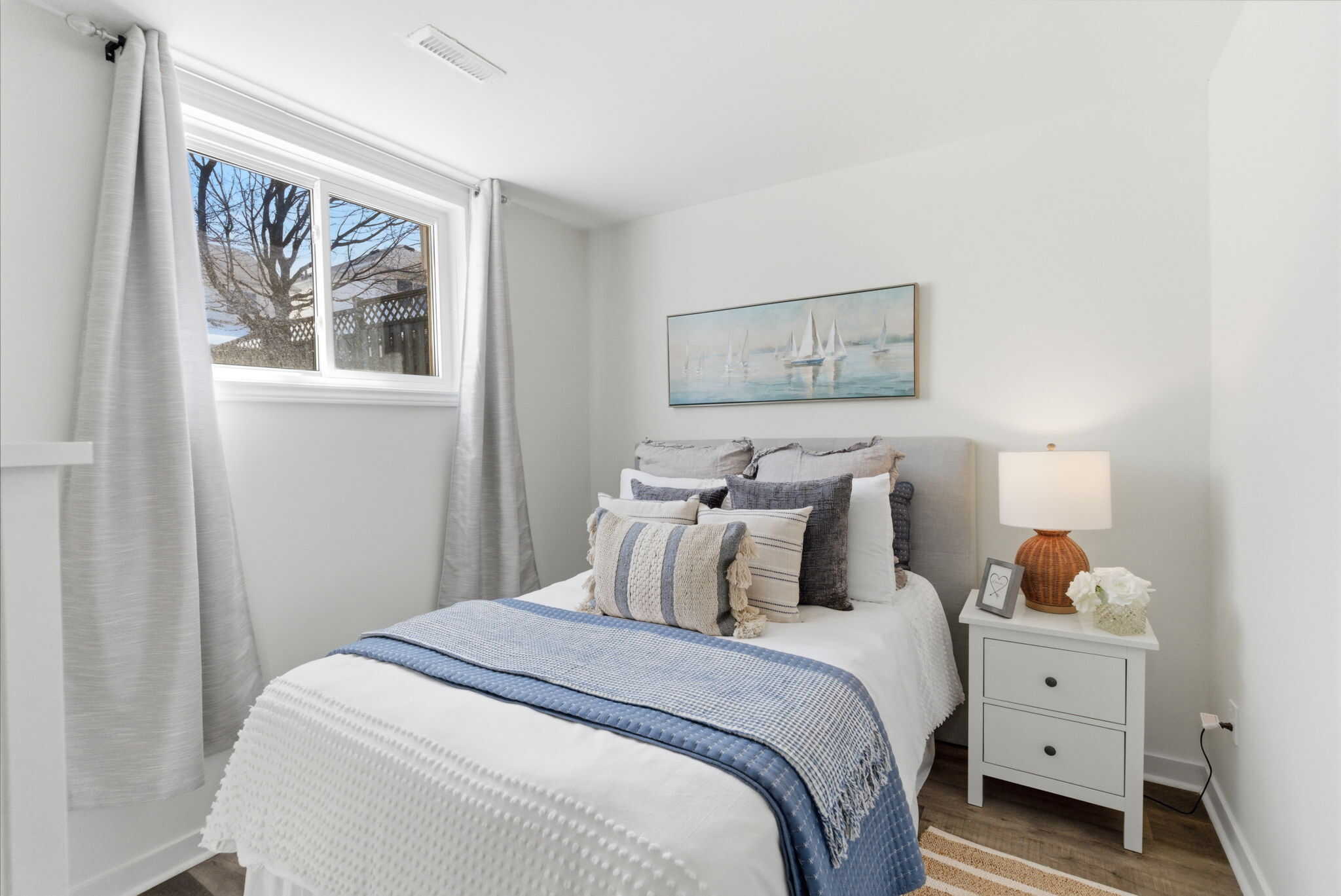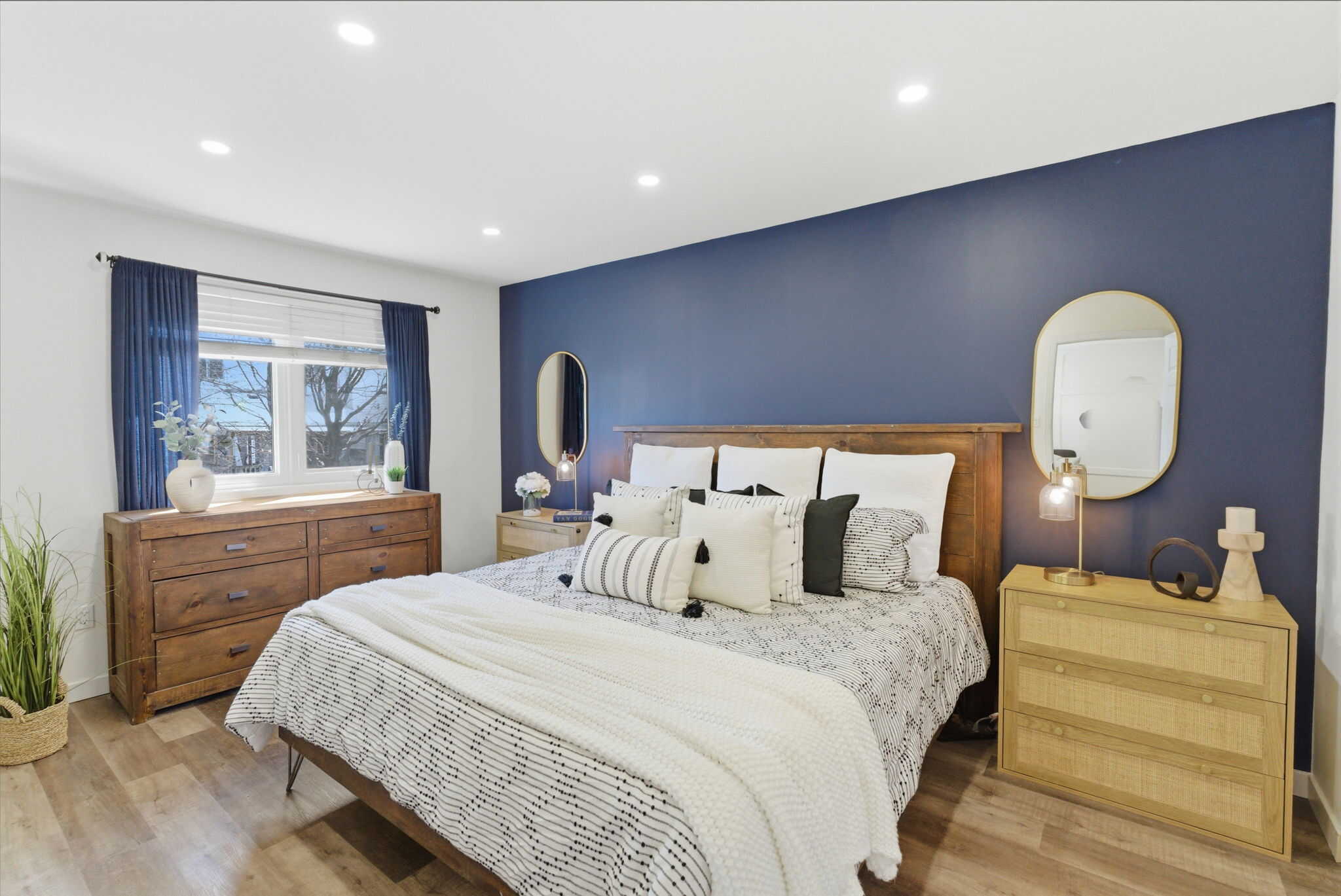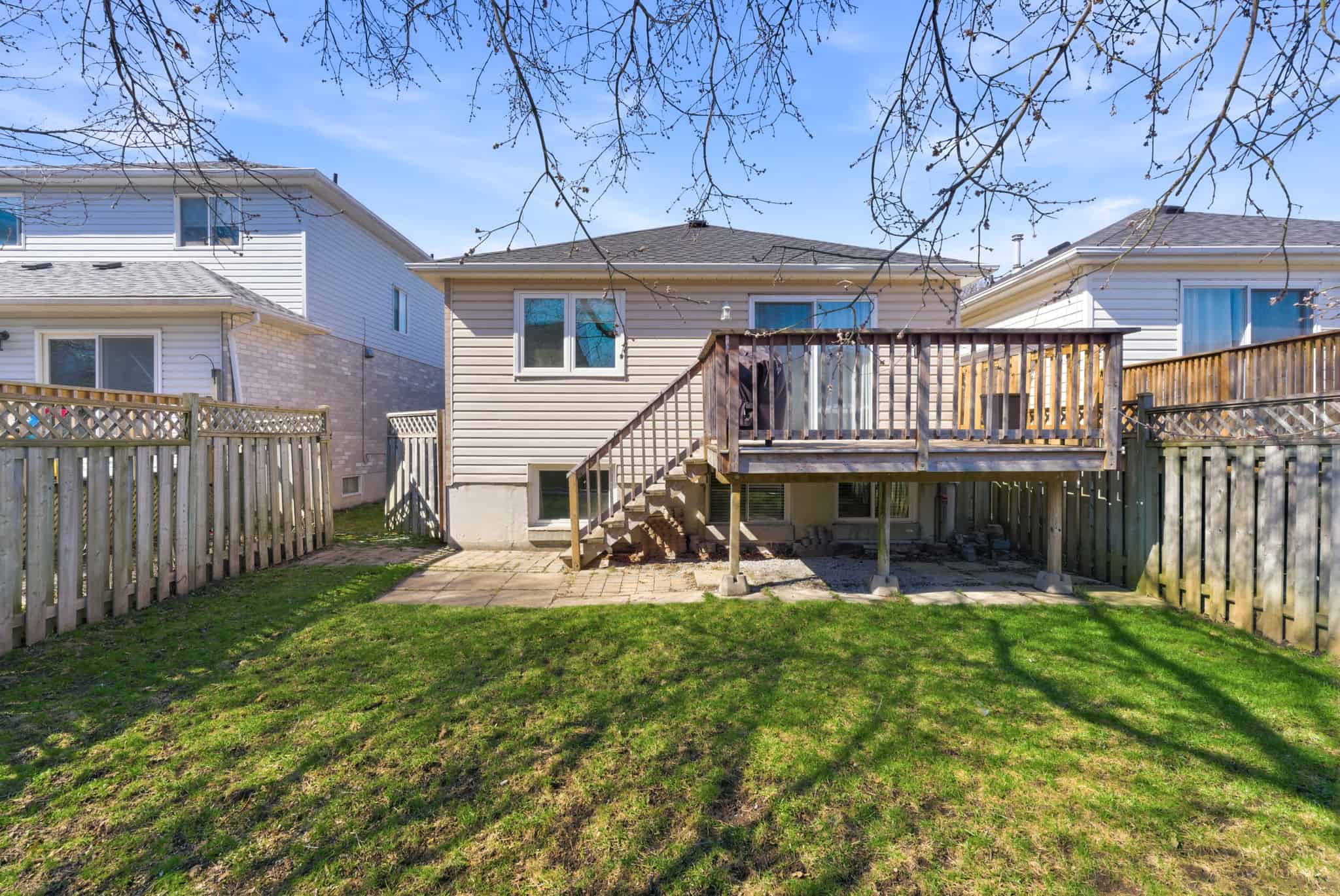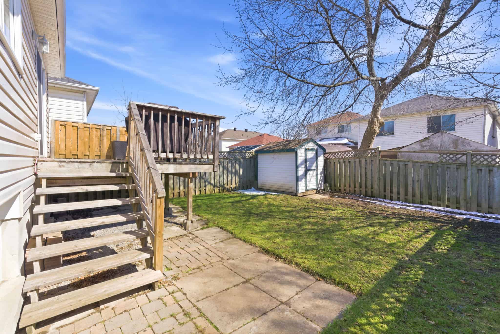 This newly renovated 3 bedroom home is perfect for first time buyers or downsizers. Located in a mature Bowmanville neighbourhood, within walking distance to downtown and close to all amenities including shopping, transit, community centre, and highway access. Walk-in to a bright and open main floor layout with newer vinyl flooring throughout and large windows flooding the space with natural light. Featuring a spacious living room accentuated by pot lights and wainscotting feature wall, with a walkout to a large deck and fully fenced backyard. The oversized primary bedroom is conveniently located on the main level, with a full 4-piece bath. The eat-in-kitchen provides space for a dining area overlooking the landscaped front year. Fully finished basement features additional 4-piece bath, laundry, and a bright recreation room with pot lights and above grade windows to the backyard. Access to the garage from the main foyer. No sidewalk to maintain, and ample parking for 3 vehicles in the drive. Recent updates include: A/C (2025), front landscaping (2025), roof (2024), updated kitchen (2023), flooring in basement (2023), pot lights and smooth ceilings (2022).