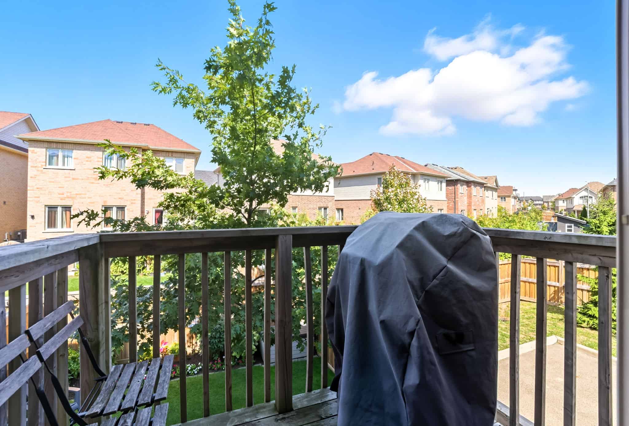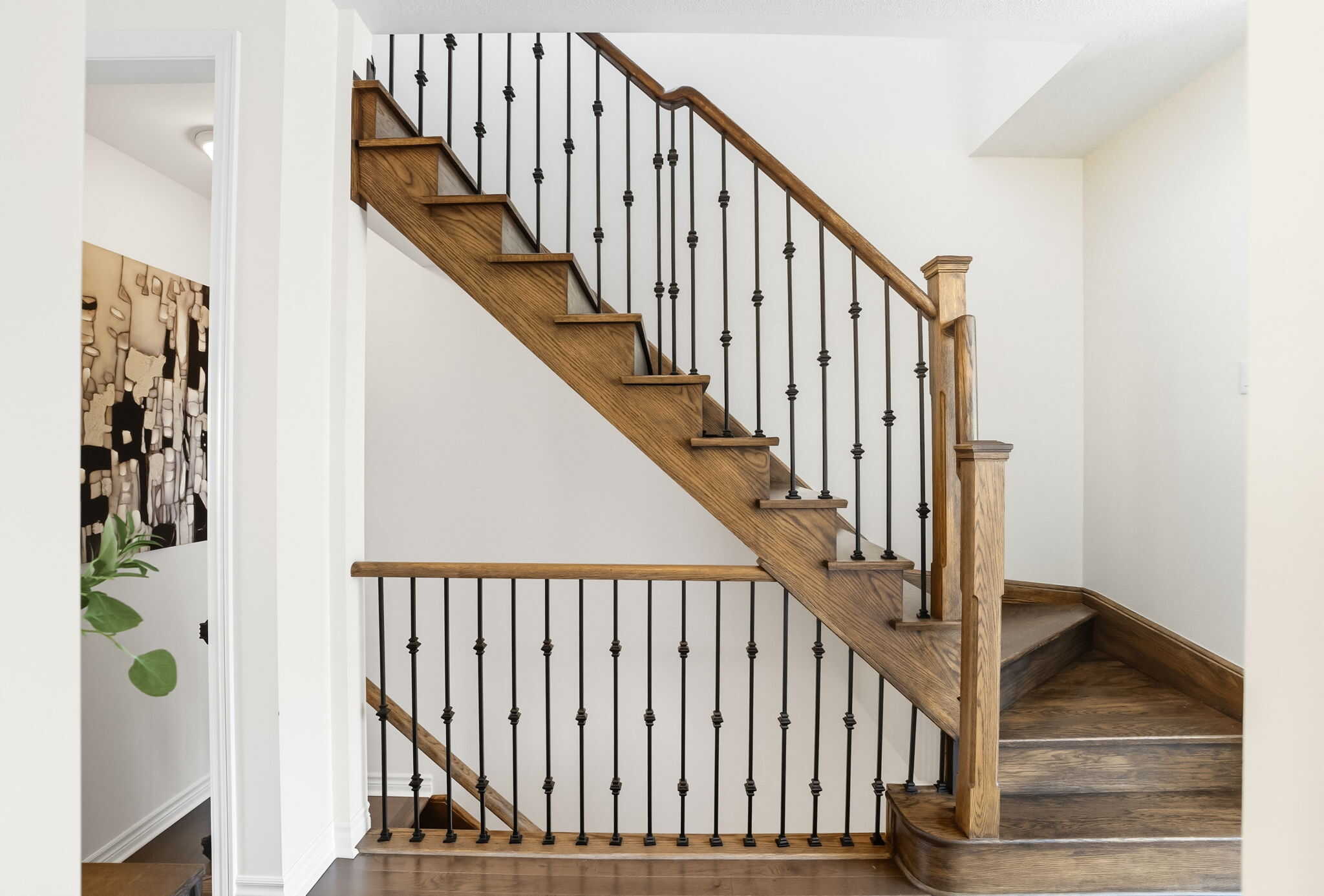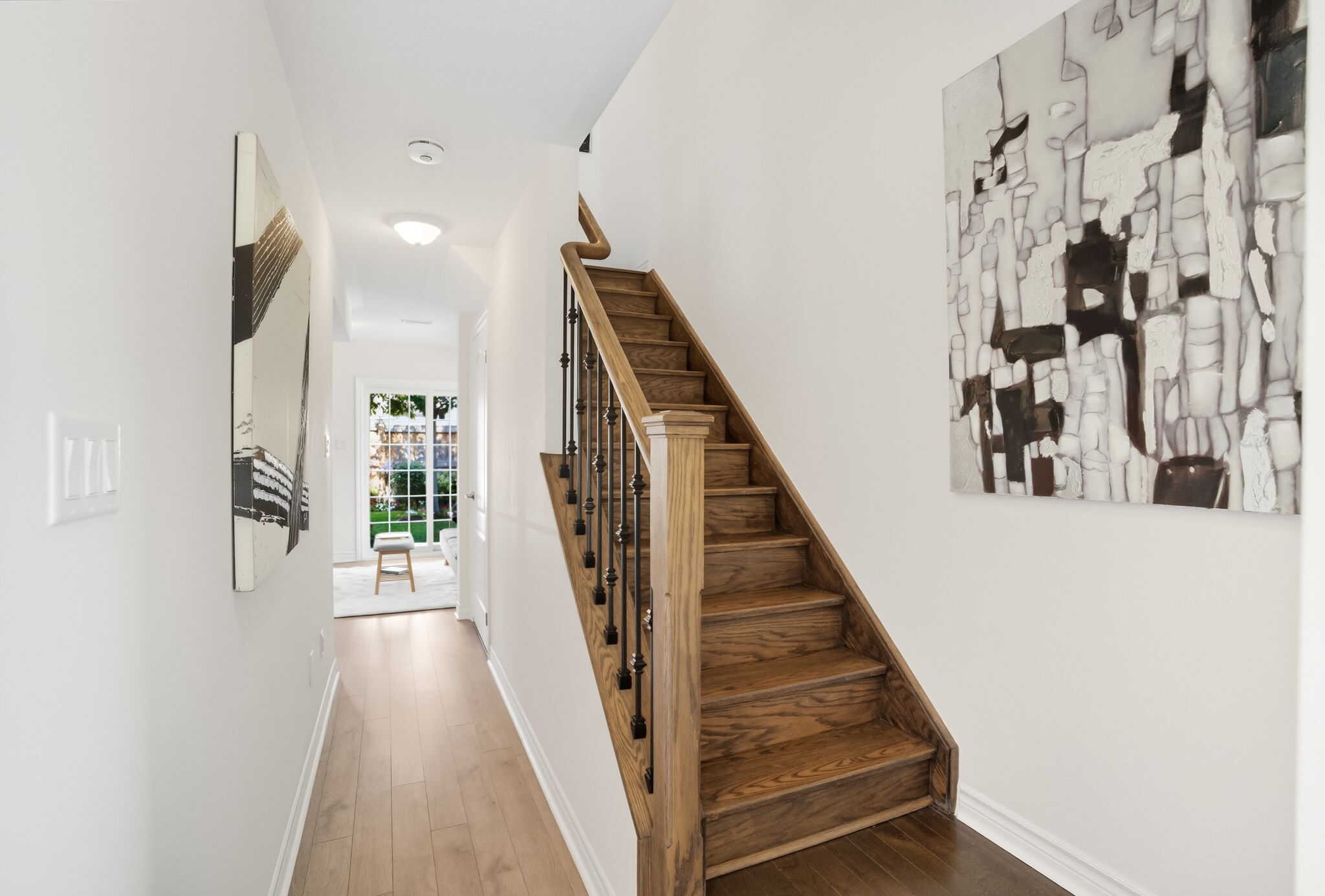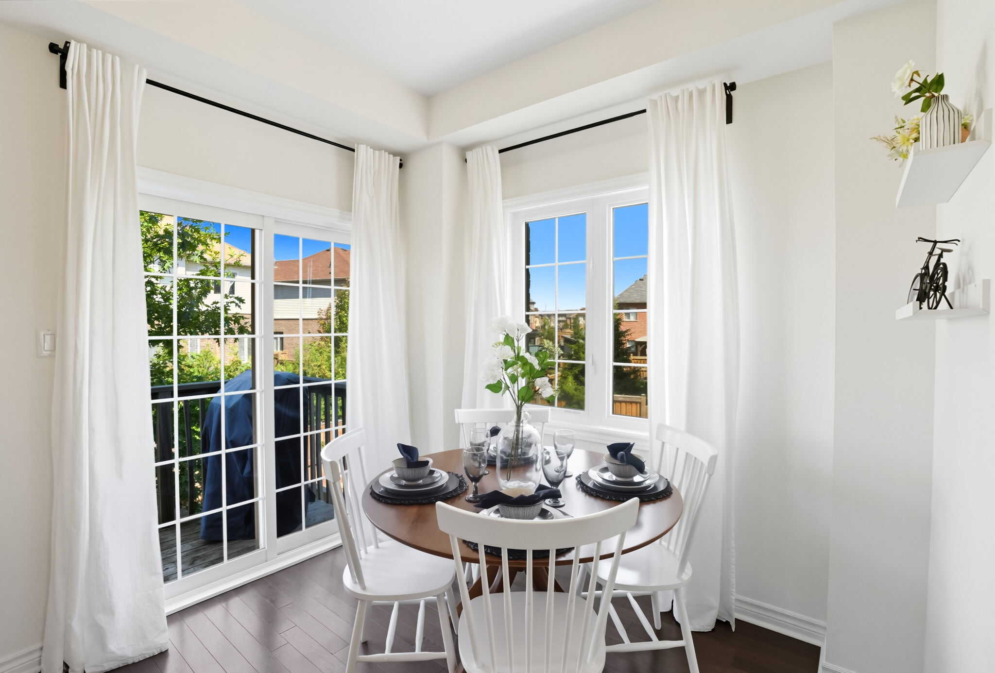 The main floor features hardwood flooring throughout. The contemporary kitchen includes stainless steel appliances, a centre island with quartz countertops / breakfast bar and lots of "pots & pans" drawers. A walkout from the dining area to a balcony overlooking the backyard is ideal for entertaining or enjoying summer evenings. The main floor is completed with a spacious living room featuring an additional walkout to a balcony. There is also a main floor laundry and a powder room.