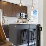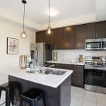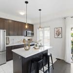 The main floor features hardwood flooring throughout. The contemporary kitchen includes stainless steel appliances, a centre island with quartz countertops / breakfast bar and lots of "pots & pans" drawers. A walkout from the dining area to a balcony overlooking the backyard is ideal for entertaining or enjoying summer evenings. The main floor is completed with a spacious living room featuring an additional walkout to a balcony. There is also a main floor laundry and a powder room.