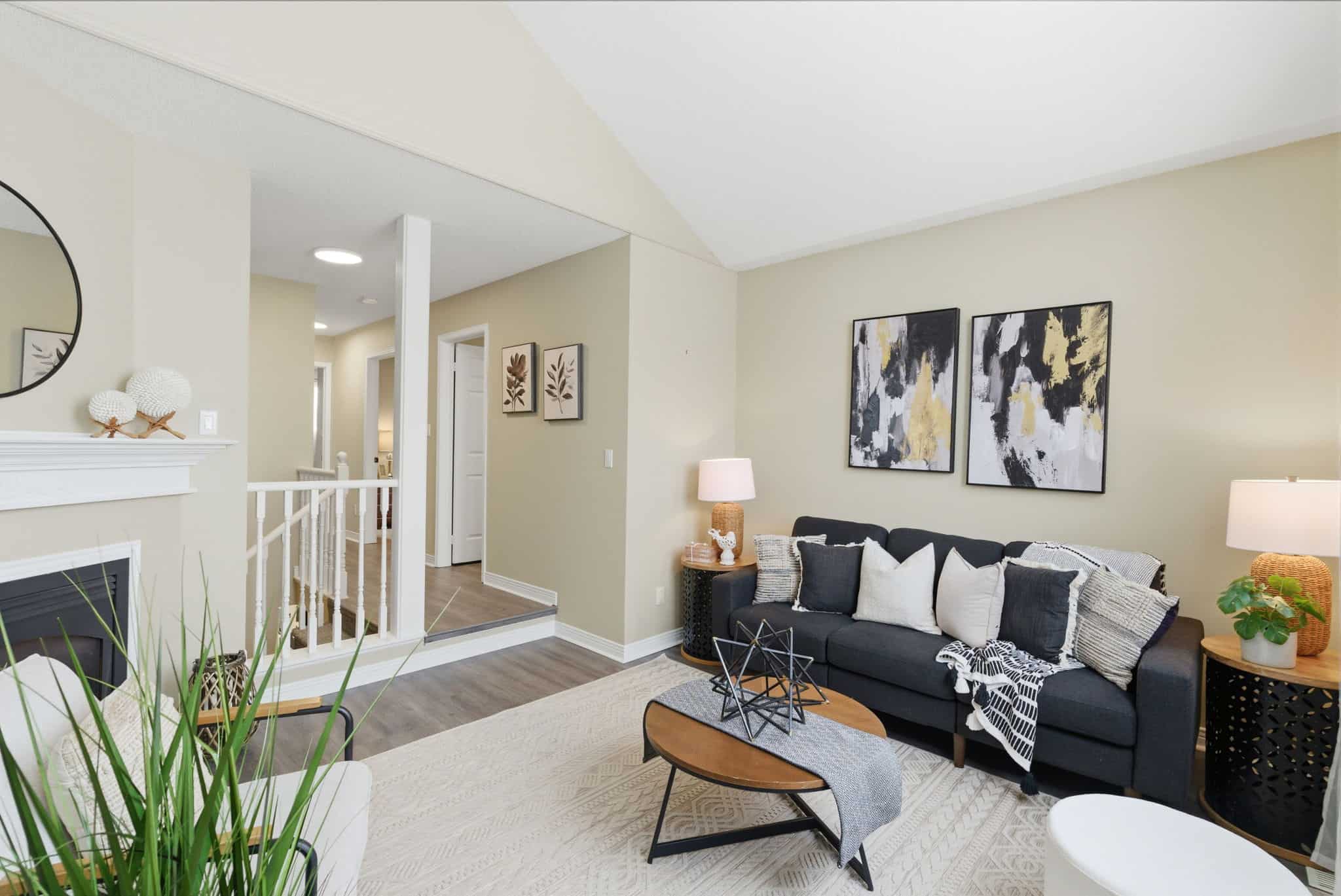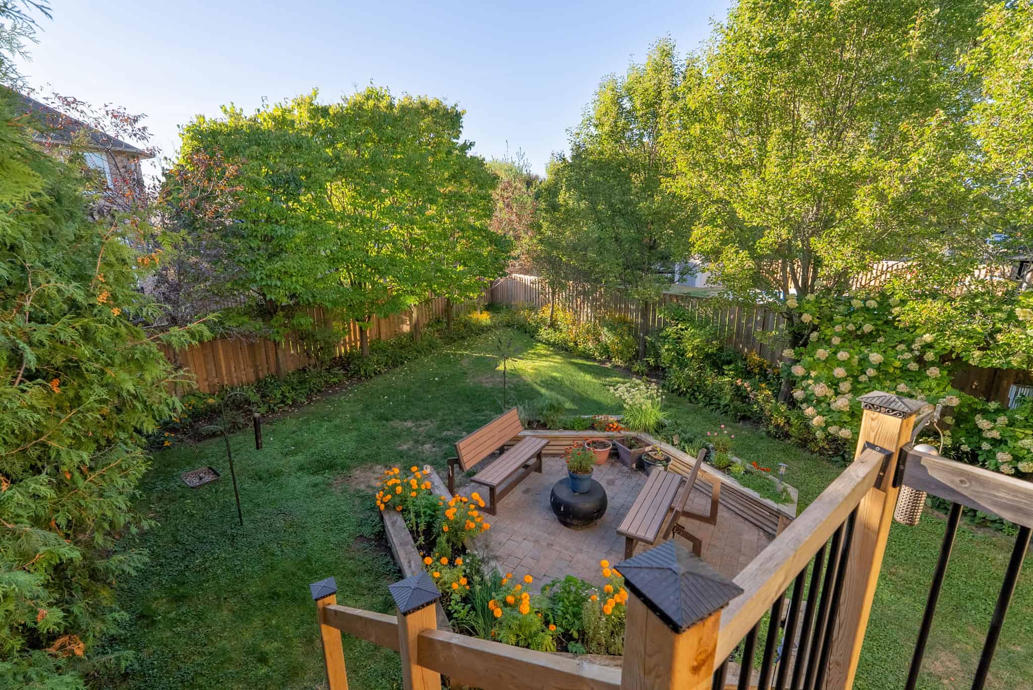 The interior features new luxury vinyl plank flooring throughout main and secondary levels. The large updated eat-in-kitchen features quartz countertops, backsplash and an extended breakfast bar. The open concept floorpan provides a generous sized living & dining room combination, walk-in pantry with main floor laundry, and access to the 1.5 car garage from the foyer. Walkout to a newly built deck overlooking the secluded tree-lined backyard with perennial gardens providing privacy and a relaxing atmosphere.