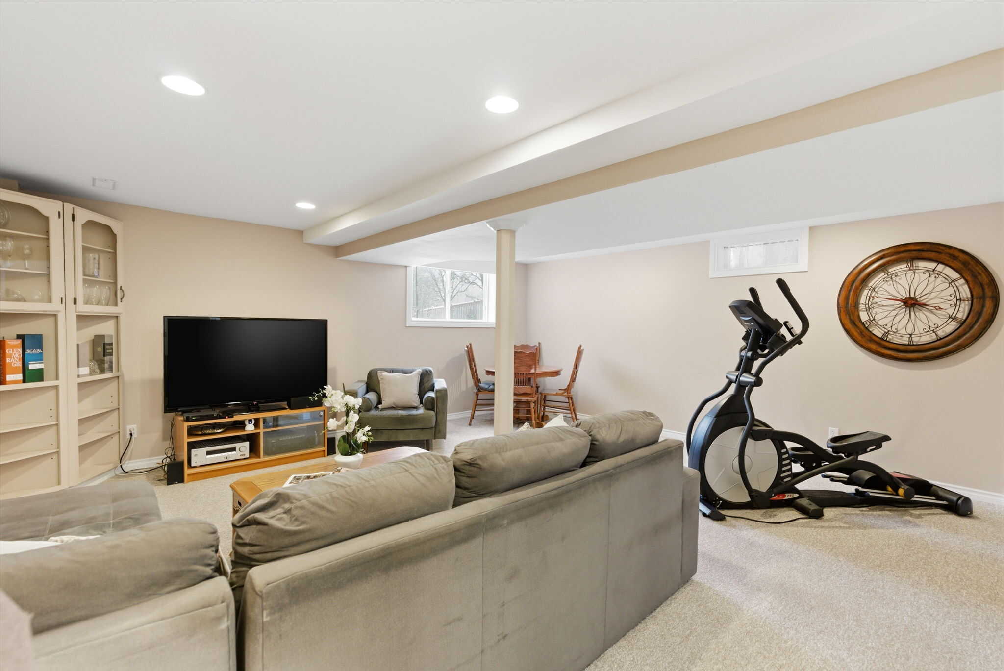 Upstairs is a secondary family room with vaulted ceilings and a cozy gas fireplace. Your primary bedroom features a walk-in closet and updated 3pc bathroom. The finished basement adds valuable additional living space and is enhanced by the large above-grade window, creating a bright and inviting area for a rec room, home office, or guest space.