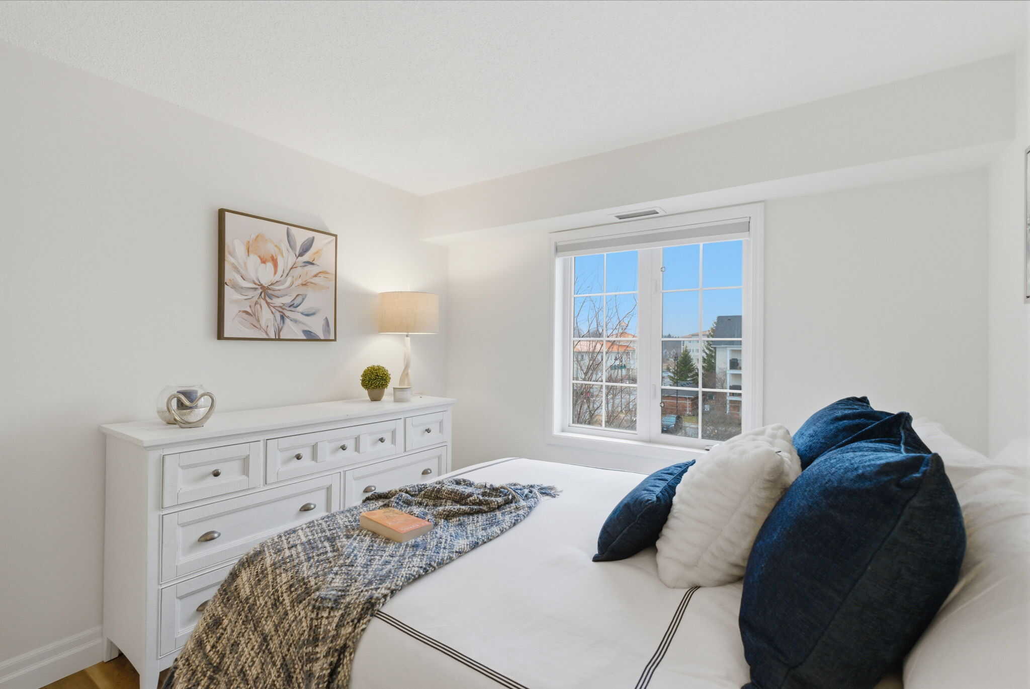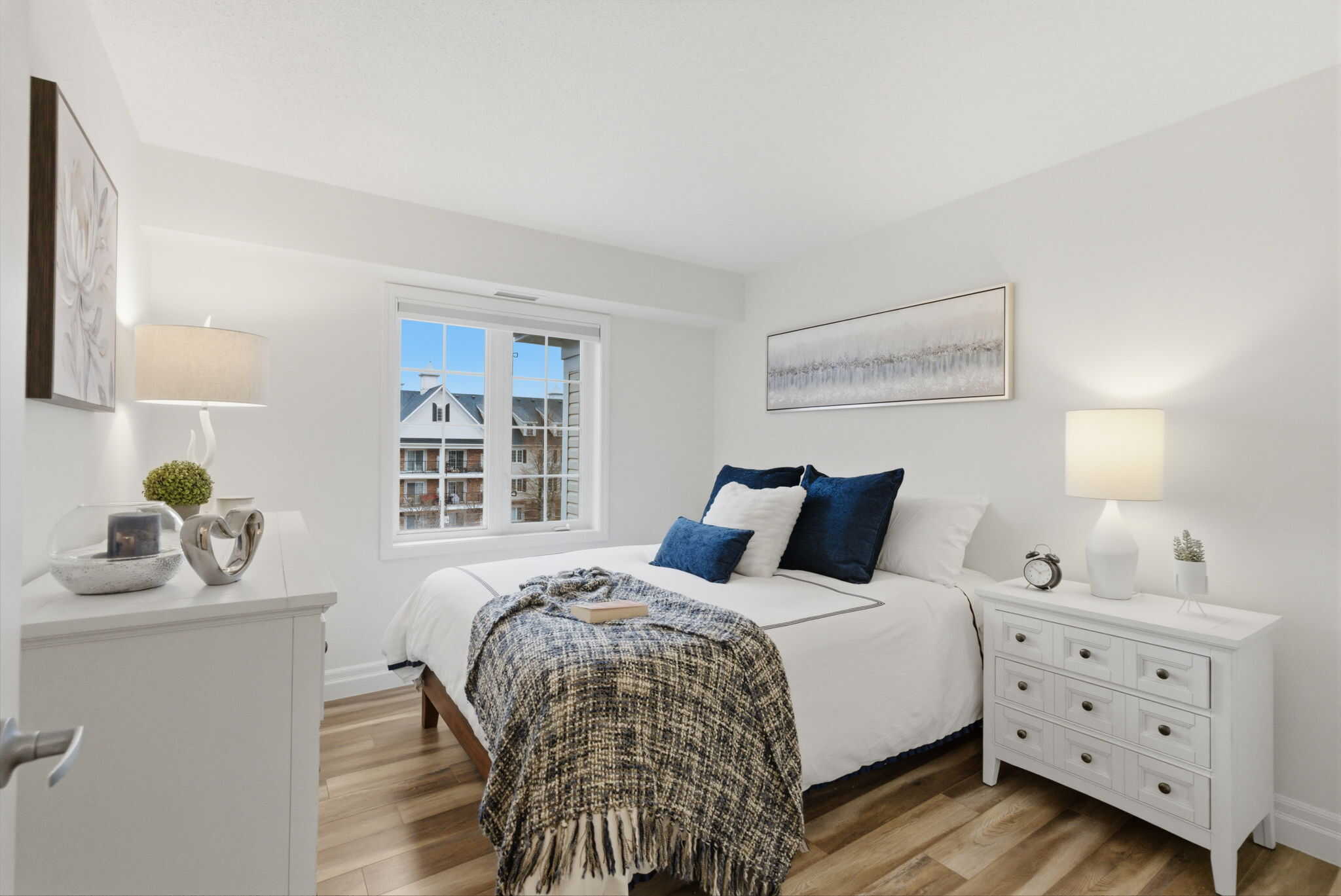 Located in the sought after waterfront community in the Port of Newcastle, this 2 bedroom corner-unit suite with no shared walls offers a low maintenance & relaxing lifestyle on the shores of Lake Ontario with walking trails, parks, marina & beaches on your door step. The Northeastern exposure allows for tons lots of natural light to flood the space, and provides a generous sized private balcony with BBQ's allowed. Recently updated throughout, this home features an upgraded kitchen with quartz countertops, pot lights, stainless steel appliances including new dishwasher & microwave & newer vinyl flooring. The spacious primary bedroom features a walk-in closet, with the 2nd bedroom ideal as a guest room or office. 4pc bathroom with new stylish vanity. Freshly painted throughout with custom blinds and modern light fixtures. Exclusive membership to Admirals Walk Clubhouse with access to a fitness centre, pool, sauna, recreation centre, library and theatre room. In-suite laundry & ample visitor parking. New Furnace & A/C unit in 2020. Owned parking spot #39 - seller currently has agreement to use spot #76, conveniently located at the front entrance. 2nd rental spot available for $100/month.